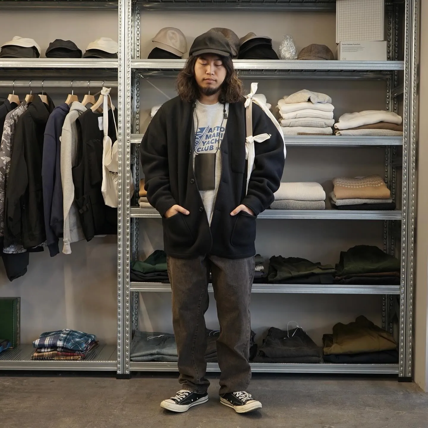 本日19時Closeです📣StylingCap:@o.eighth/6PANNELCAP【I】Jacket:@burlap_outfitter_official/FLEECEPENJACKETInner:@atelieramelot/PRINTSWEATPants:@kaptainsunshine/5PZipperFrontDenimPantsModel:175…