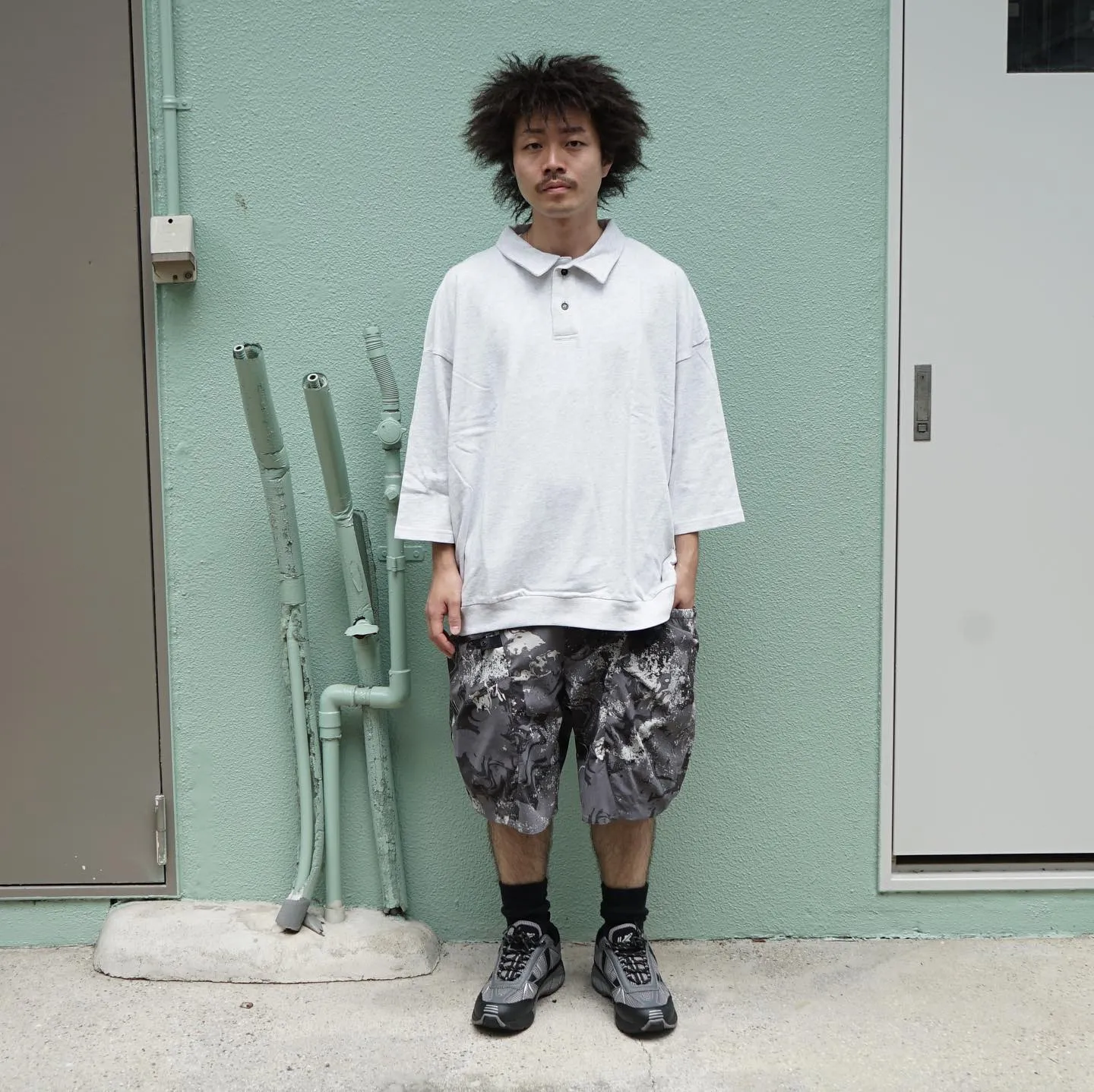 ブラウンベースでダークトーン H:173cm60kgブラウンベースのダークトーンで少しおじさんっぽく。いなたさ抜群のJhayberのスニーカーが推しです。-品番- DOGEMBROIDERYCOTTONDADCAP:KHAKI ShakaWear:Garment-DyedDrop-ShoulderT-Shirt…