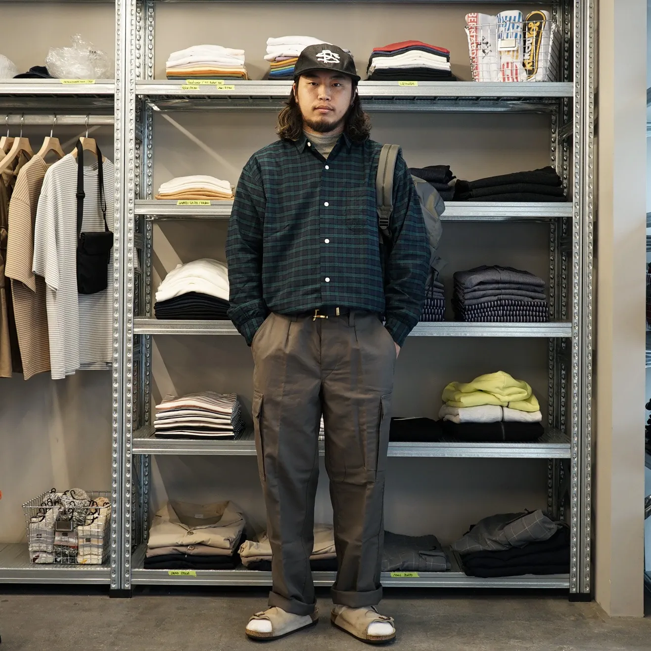 Wood stock H:162cm55kg紹介文夏も終わりに近づいてきたので、ブラウンベースにスタイリングを組みました。Woodstockのキャップの赤がイカしてますね!!-品番- 商品名1:BLUESCENTRIC:WOODSTOCKHAT 商品名2:CalTop…