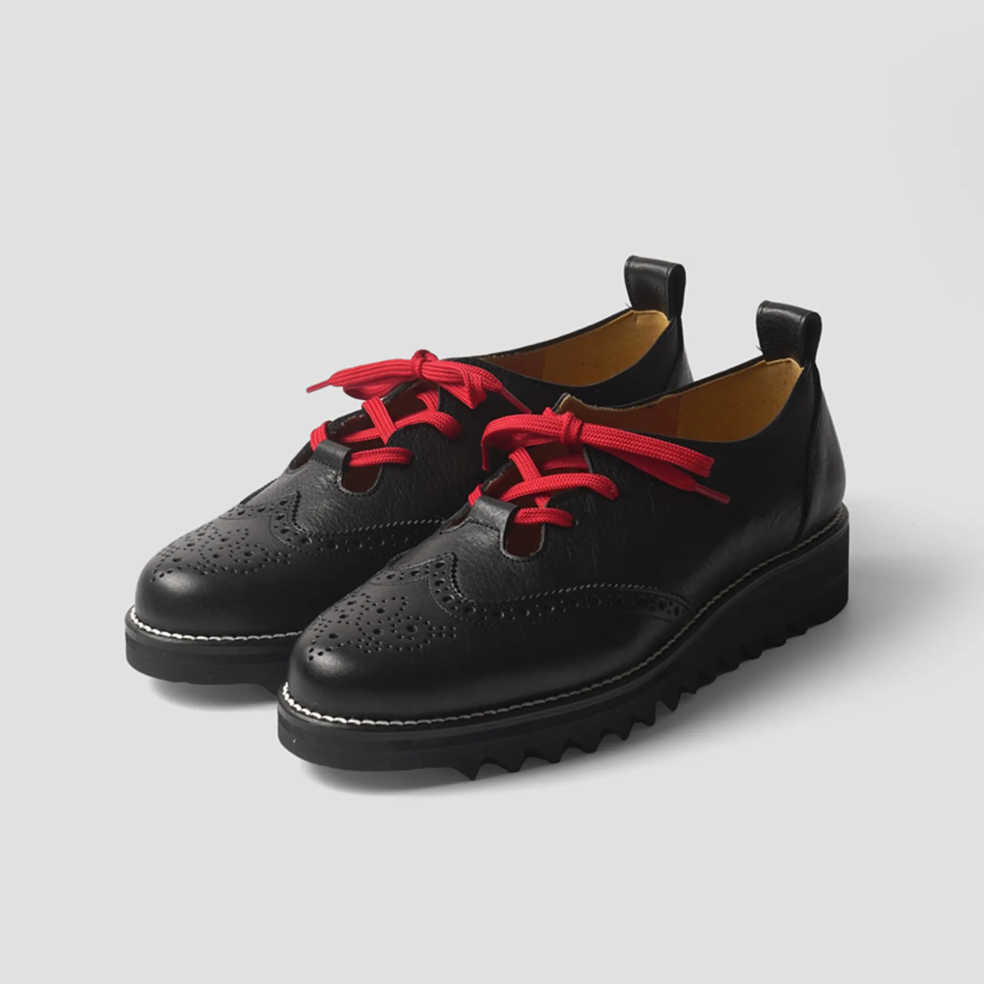 UKパンクよろしくなチェックパンツと赤いシューレースが特徴的なギリーシューズ。